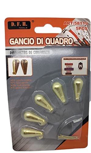 Terryshop74 Ganci per quadro appendi quadro a goccia in metallo dorato 5 pezzi compresi di chiodi ottonate