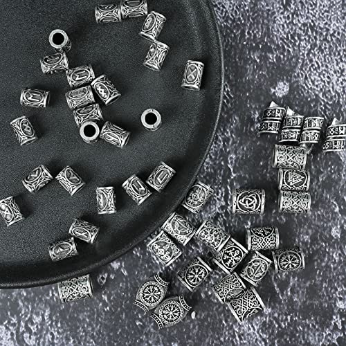 Teruntrue 46 pezzi di perline di barba vichinga, perline per capelli norreni antichi, perline di gioielli con dreadlocks per intrecciare i capelli, collana con ciondolo a bracciale(Runa Vichinga)