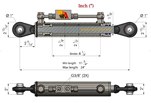 Terzo punto idraulico CAT 2-2 450-610mm completo di tubi e nippli