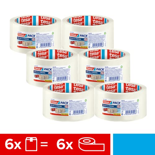 Tesa Confezione da 6 pezzi Solid & Strong - Nastro avvolgente silenzioso - Nastro per la chiusura sicura dei pacchi - 6 rotoli da 66 m x 50 mm - trasparente