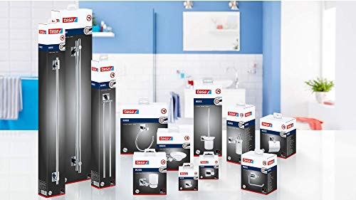 Tesa hukk - Barra per asciugamani da bagno cromata antiruggine inclusa soluzione adesiva ad alta tenuta (fino a 12 kg), 87 mm x 700 mm x 50 mm