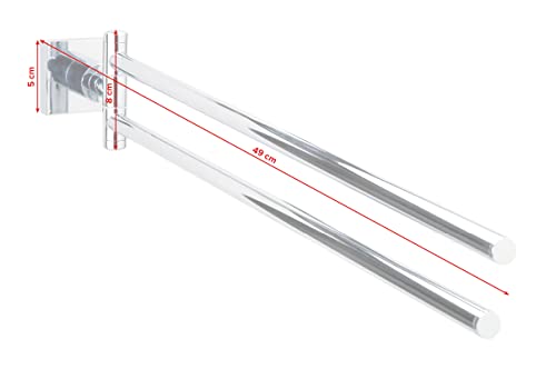 Tesa hukk - Portasciugamani da parete a 2 bracci, cromato, con soluzione adesiva, portata fino a 6 kg, 485 x 50 x 84 mm