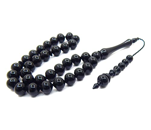 Tesbih Tasbih Tespih Misbaha Subha 33, 31 cm, rosario islamico musulmano Prayer accessorio di culto ottomano nero effetto onice perle sfera 10 mm, 10mm perlen - 31cm Tesbih, Acrilico, onice, perle