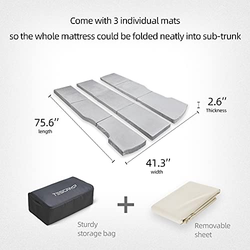 TESCAMP - Materasso da campeggio Tesla in memory foam CertiPUR, custodia e lenzuolo in dotazione, per Tesla Model 3, portatile, pieghevole, salvaspazio, doppia dimensione