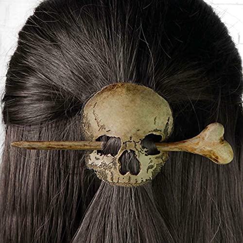Teschio Hair Pin Stick Slide con finto osso, Halloween Decor Death Moth Hair Clip Sticks Hairpin, Retro Gothic Skull Hair Clip (Cranio)