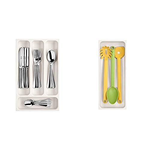 Tescoma 899410 FlexiSpace Porta Posate da Cassetto, Plastica, Bianco, 37 x 22,2 X 4,5 cm & 899432 FlexiSpace Porta Utensili da Cassetto, Plastica, Bianco, 37 x 15 X 4,5 cm