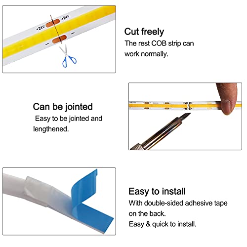 Applicazione: Striscia COB 24V super luminose, Bianco Naturale 4000K 320 LED / M totale 1600 LEDs 5 metri camera da letto, sala da pranzo, cucina, retroilluminazione, giardino, illuminazione per feste, risparmio energetico e sicuro da usare.