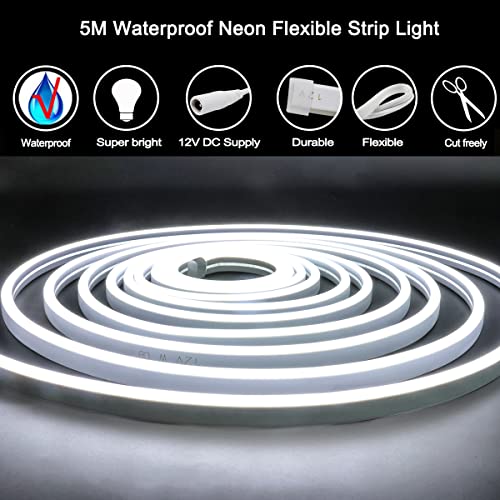 Tesfish Striscia LED al Neon, Nastri LED DC 12V 5M 120 LEDs/M Totale 600 LEDs 6000K Bianco Luci Striscia LED IP65 Flessibile per Camera da letto, Bar, Sala Giochi, Compleanno, Festa di Natale