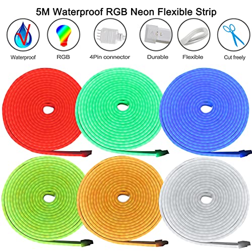 Tesfish RGB Striscia LED al Neon, Nastri LED DC 12V 5M 96 LEDs/M Totale 480 LEDs Luci Striscia LED IP65 Flessibile per Camera da letto, Bar, Sala Giochi, Compleanno, Festa di Natale