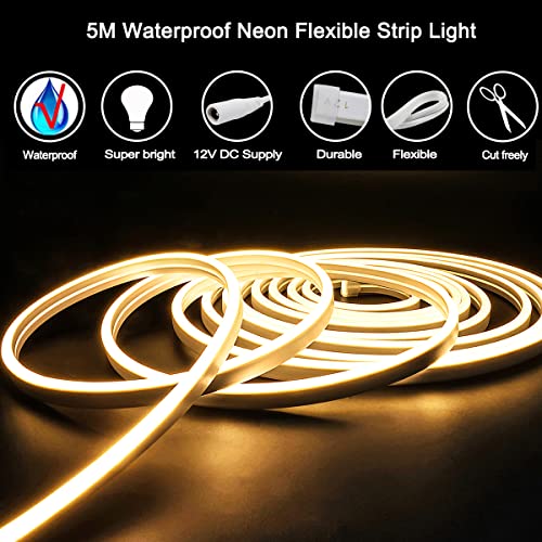 Tesfish Striscia LED al Neon, Nastri LED DC 12V 5M 120 LEDs/M Totale 600 LEDs 3000K Bianco Caldo Luci Striscia LED IP65 Flessibile per Camera da letto, Bar, Sala Giochi, Compleanno, Festa di Natale