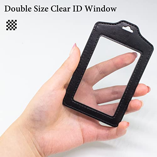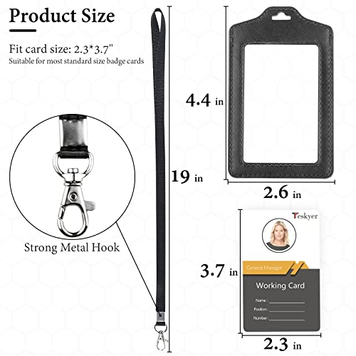 Teskyer Confezione da 2 Porta Badge, Trasparenti a Doppia Faccia Porta Badge Da Collo, Porta Badge Identificativo in Pelle PU con Cordino in Nylon con Gancio a J in Acciaio Inossidabile, Nero