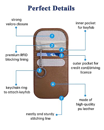Teskyer Faraday Keyless Schermatura Chiave Auto, custodia anti-hacking Faraday, custodia antifurto con blocco del segnale RFID per chiave auto, Marrone