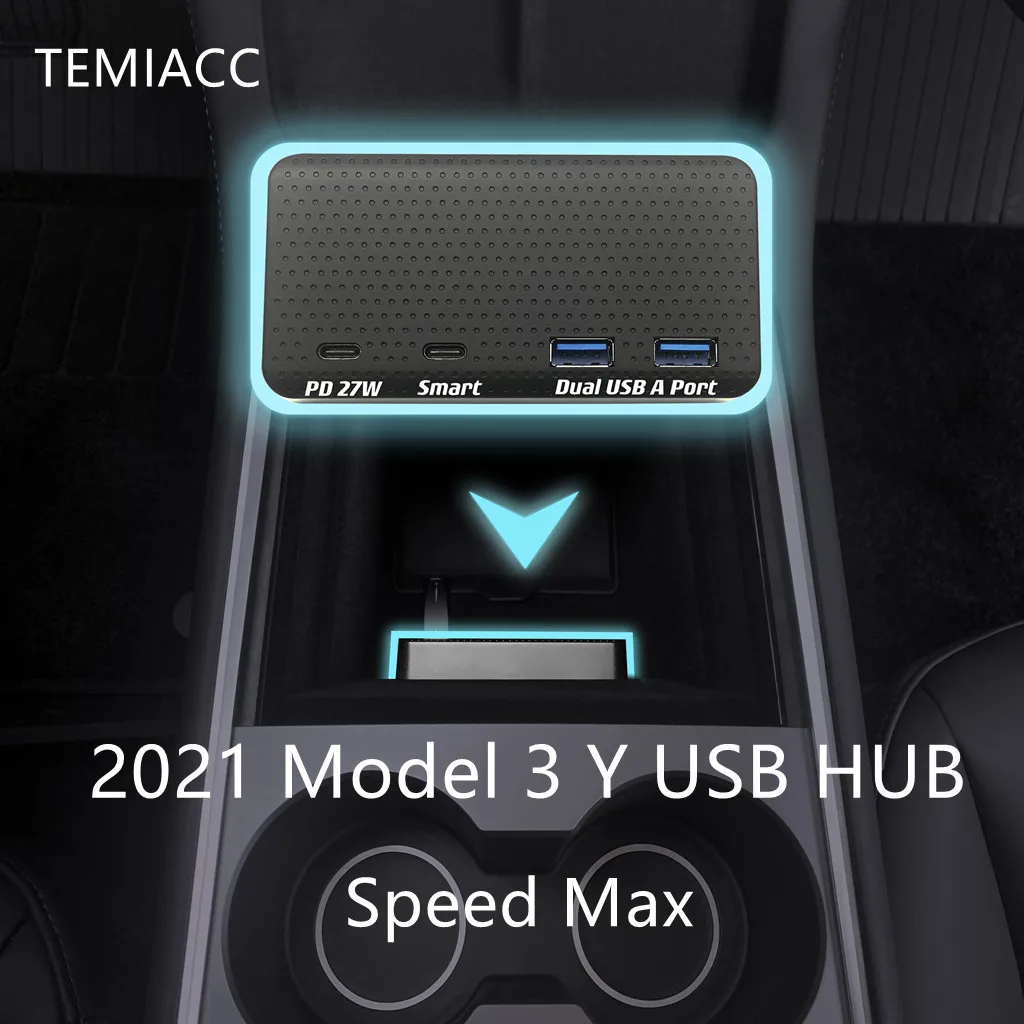 Tesla Model 3 Y Accessories USB Splitter Hub for 2021 Tesla Model3 / Y HUB Docking Station Speed Hub Extender Charger