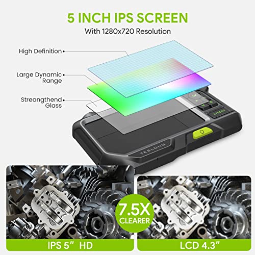 Teslong Endoscopio, Telecamera Ispezione Tubi con Schermo IPS da 5 Pollici, 1080P HD Telecamera Endoscopica con Luci, Boroscopio IP67 Impermeabile, Custodia in Plastica Rigida (Tripla Lente/7,9 mm)