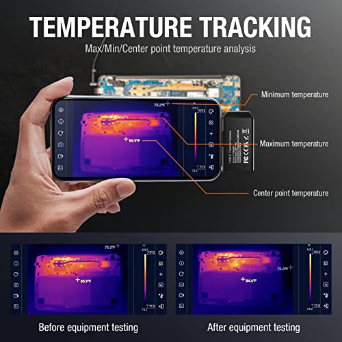 Telecamera termica ad alta risoluzione: la termocamera dispone di un'alta risoluzione di 160 x 120 pixel e una frequenza di fotogrammi veloce di 25 Hz, con immagini nitide e video senza interruzioni. La termocamera può rilevare variazioni di temperatura dettagliate con una sensibilità termica di 50 mK e acquisire maggiori dettagli per un'analisi accurata - ideale per applicazioni domestiche e industriali