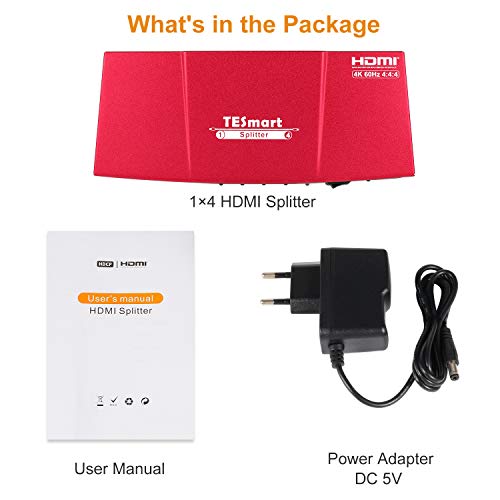 TESmart Splitter HDMI 4K 1x4 HDMI Splitter 1 in 4 Out Supporta HDCP, 4K 60Hz, 3D, UHD,1080P, HDMI Sdoppiatore 1 Ingresso 4 Uscite Compatibile con Xbox, PS4, PS3, lettore Blu-Ray, Firestick, HDTV-rosso