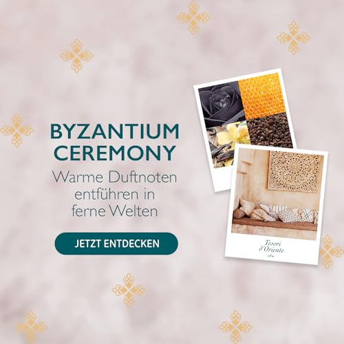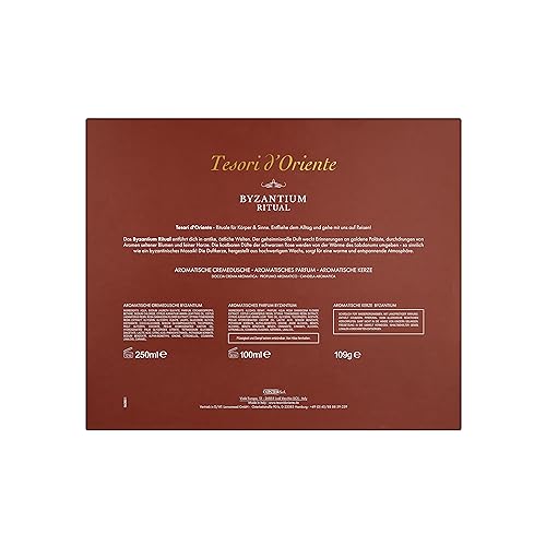 TESORI D'ORIENTE Set regalo Byzantium (doccia crema 250 ml, Eau de Toilette 100 ml e candela profumata) con rosa nera e labdano, rituali benessere per corpo e sensi