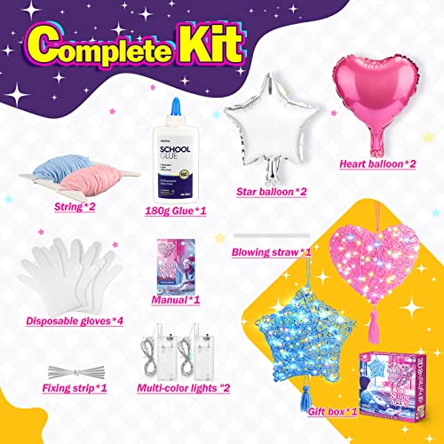 【Il kit decorativo perfetto】Un kit artistico 3D in due forme, una a forma di stella e una a forma di cuore. La bellissima lanterna può essere appesa in camera da letto o in soggiorno per aggiungere un'atmosfera calda e sognante alla stanza dei bambini. Può anche essere utilizzata come decorazione per le feste. Potete decorare la lanterna ovunque vogliate.