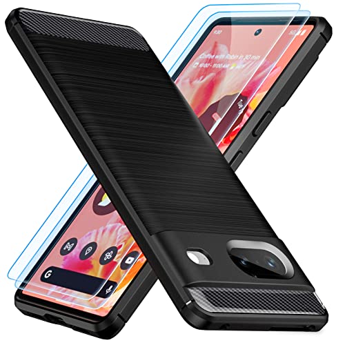 TesRank Cover per Google Pixel 7 Cover + 2 Pezzi Vetro Temperato, [Fibra di Carbonio] Morbido TPU Custodia Protezione Anti Scivolo/Antiurto per Google Pixel 7-Nero