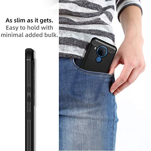 TesRank Cover per Nokia 5.4 Cover + 2 Pezzi Vetro Temperato, [Fibra di Carbonio] Morbido TPU Custodia Protezione Anti Scivolo/Antiurto per Nokia 5.4-Nero
