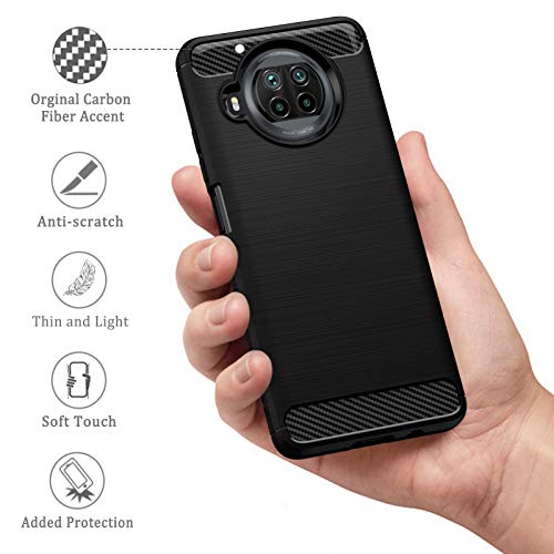 TesRank Cover per Xiaomi Mi 10T Lite Cover + 2 Pezzi Vetro Temperato, [Fibra di Carbonio] Morbido TPU Custodia Protezione Anti Scivolo/Antiurto per Xiaomi Mi 10T Lite-Nero