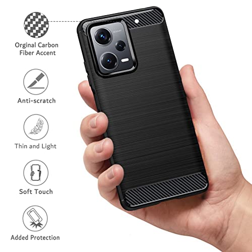 TesRank Cover per Xiaomi Redmi Note 12 Pro+(Pro Plus) 5G + 2 Pezzi Vetro Temperato, [Fibra di Carbonio] [Anti Scivolo] [Anti Antiurto] Morbido TPU Custodia per Xiaomi Redmi Note 12 Pro+ 5G-Nero