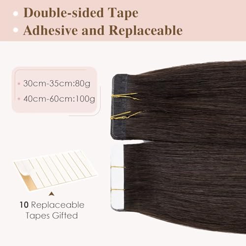 TESS 55cm Extension Capelli Veri Biadesivo #2 Marrone Scuro 40pcs 100g Extension Biadesive Capelli Veri Remy Human Hair Tape in Riutilizzabile Invisibile Lisci