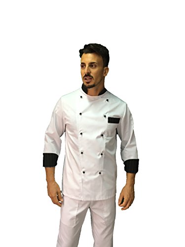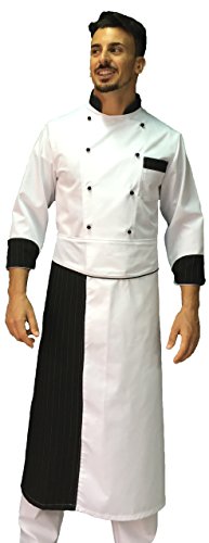 Tessile astorino Completo Cuoco Chef Bianco e Nero gessato, Pantalone Giacca e davantino, Made in Italy (XXXL)