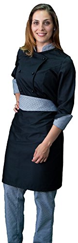 Tessile astorino Completo Cuoco Chef Nero con Profili Pied de Poule Donna, Pantalone Giacca e davantino, Made in Italy (XS)