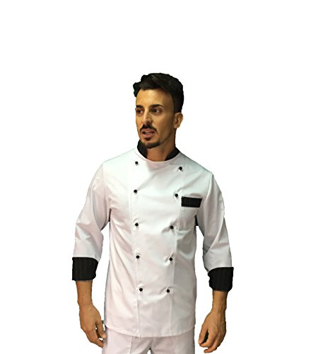 Tessile astorino Giacca Cuoco Basic Bianca e Nero gessato, Made in Italy (S)