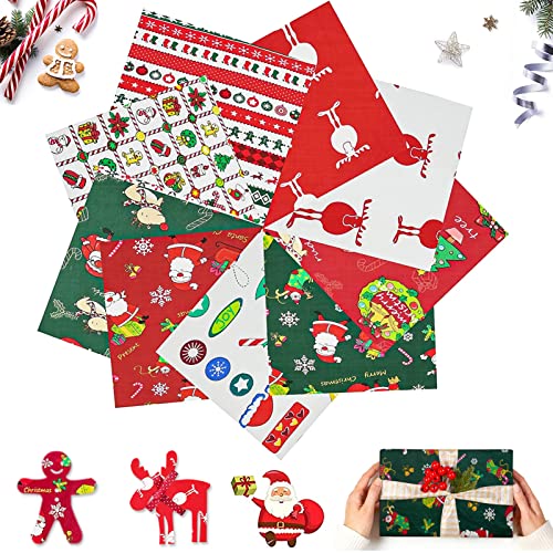 Tessuti Natalizi,10 Pezzi Tessuto Natale,Tessuto di Cotone Natale,Tessuto Stampato per Cucito,Patchwork Tessuto Stampato,Tessuti In Cotone Patchwork, per artigianato natalizio fai da te (10)