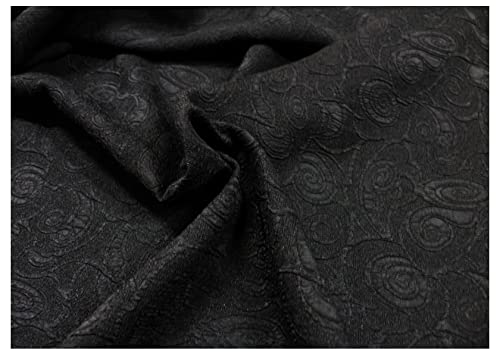 Tessuto Abbigliamento Moda Raso Damascato Broccato Rose Nero 100x140cm