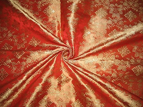 Tessuto broccato arancione & oro colore 111,8 cm, decorazione per la casa, cucito, moda, vestito per bambola, arredamento, interni.