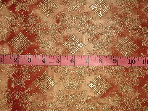 Tessuto broccato arancione & oro colore 111,8 cm vestment design hobby, decorazione casa, cucito, moda, abito per bambole, arredamento, interni.