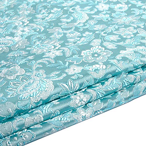 Tessuto Broccato di Raso Cinese Fiore da Ricamo per Foglio DIY Cloth Materiale 75 cm Larghezza (Blu, Venduto al Metro)
