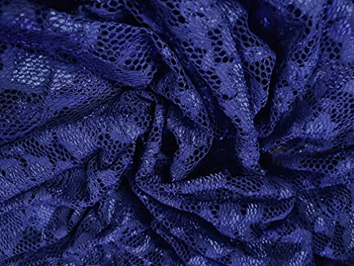 Tessuto elasticizzato per abiti in pizzo, motivo floreale, al metro, colore: blu reale