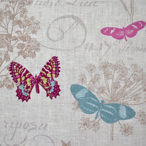 Tessuto di Lino - Farfalle (Bianco) | 100% Puro Lino | Altezza: 140 cm (1 Metro)