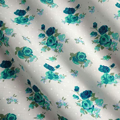 Tessuto misto cotone in colore avorio chiaro, con puntini e rose stampate, vari colori, vendita al metro Greens