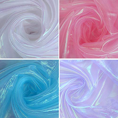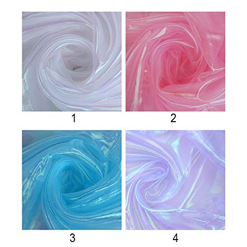 Tessuto di raso setoso, tessuto fluorescente colorato lucido, tela di garza per matrimonio, decorazione di nozze, tessuto olografico trasparente 1,5 x 2 m, bianco, free size