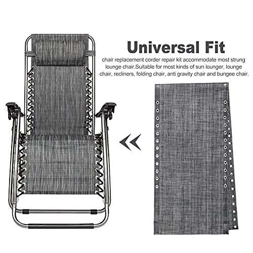 Tessuto di ricambio per sedia Zero Gravity, tessuto anti gravità, accessori per sedie a gravità, elastico, sedia reclinabile da patio, con 4 corde di ricambio (grigio)