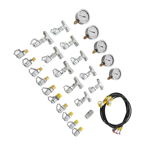 Alta qualità: il test di pressione idraulica è dotato di un set completo di accessori e vari tipi di escavatori. L'accoppiamento è realizzato in acciaio al carbonio di alta qualità, elevata resistenza e affidabilità, non facile da rompere o danneggiare, durevole e può essere utilizzato per un a lungo. Risultati accurati e facili da leggere.