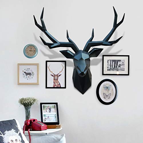 XYF Testa Cervo da Appendere Ornamento Testa di Cervo Cervo da Parete Geometria Scultura da Parete Creativo Testa di Cervo da Parete Resina Decorazione Murale (Color: Black, Size: 52 * 68cm)
