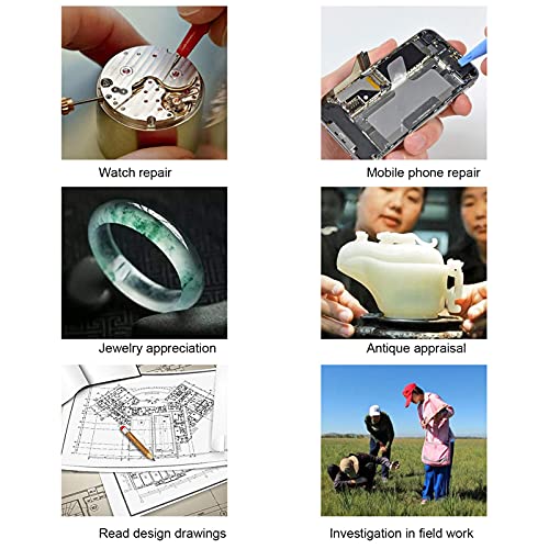 Occhiali d'ingrandimento: Per l'elettronica e il modellismo, lente d'ingrandimento per orologiai, lente d'ingrandimento per gioiellieri, lente d'ingrandimento per ricami. La lente d'ingrandimento per montaggio sulla testa è ideale per uso industriale, PCB e stampa, prodotti farmaceutici, monete e francobolli.