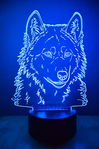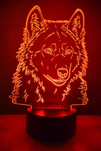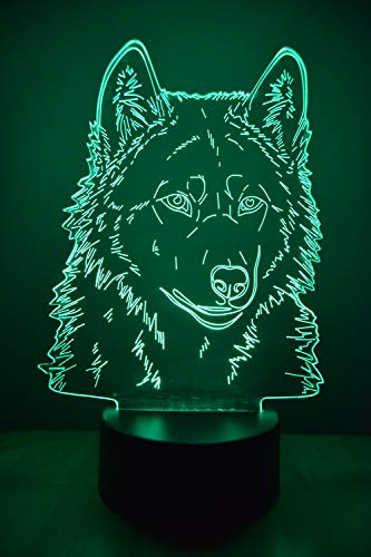 Testa di lupo 3D LED Illusione Lampada Luce di Notte Accanto Colori Tavolo Auto Cambiamento Touch Interruttore Decorazione Della Scrivania Telecomando