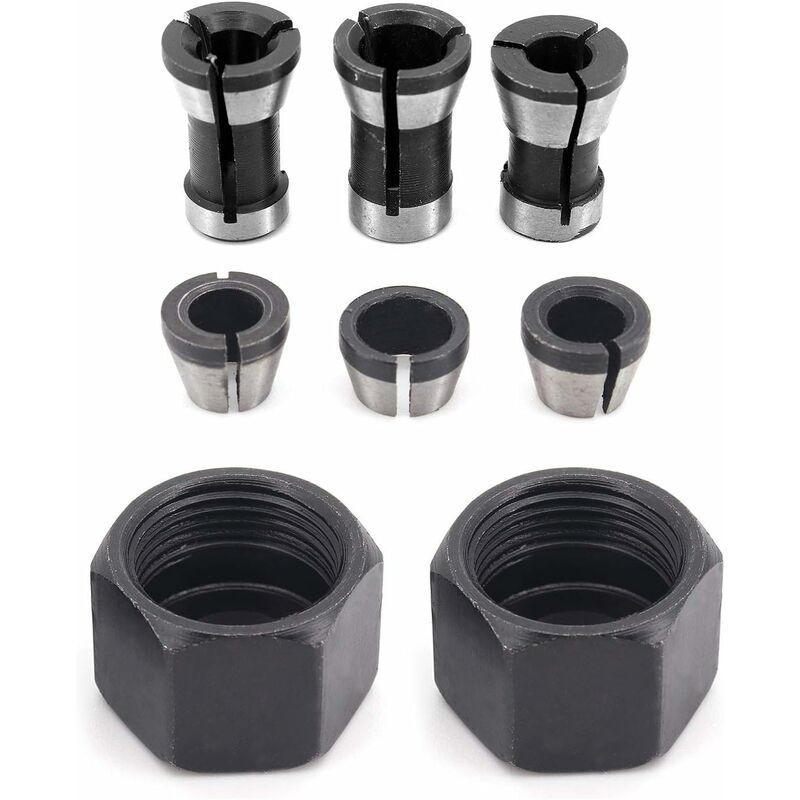 Diametro del foro: 6 mm/6,35 mm/8 mm, 3 dimensioni per soddisfare le diverse esigenze. Compresi due dadi da 13 mm. Realizzato in acciaio al carbonio, buona flessibilità e resistenza all'usura. Esecuzione squisita e prestazioni stabili, portatile e facile da usare. Alto serraggio preciso, stretto e stabile, migliora l'efficienza del lavoro. Adatto per macchina per incidere, router per legno, macchina per incidere, ecc. ladaceae