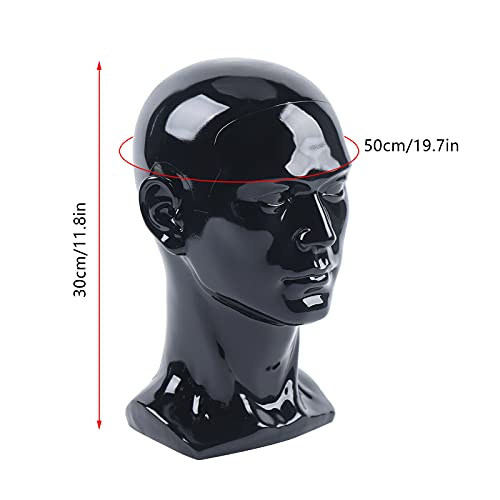 Testa da 50 cm in PVC per parrucca, cappello, occhiali, per parrucche, cappelli, sciarpe, schermi per capelli, abbigliamento per negozi, saloni o negozi di cappelli (nero chiaro)