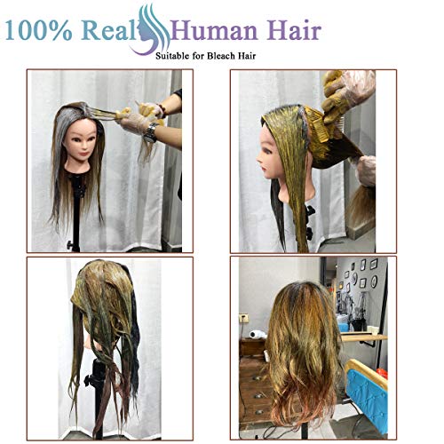 Testa per parrucchiere, Missicee 18" 100% Capelli Testina Parrucchiere Testa Studio Parrucchiere Manichino Parrucchiere Pratica Modello Capelli con Morsetto + Acconciature per Capelli
