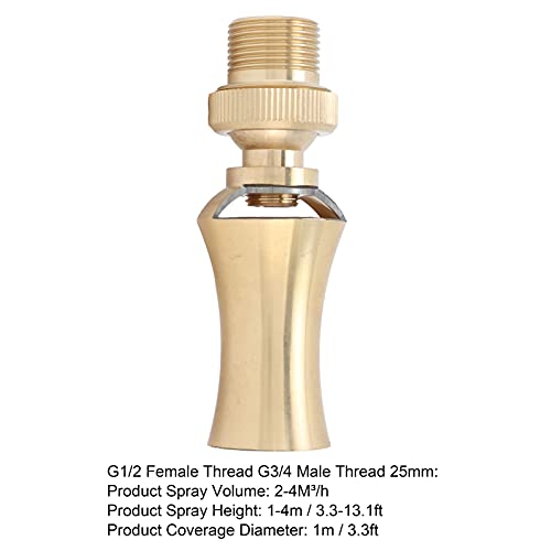 Testa di Spruzzo a Getto di Direzione Regolabile in Ottone, Ugello per Fontana di Cedro a Torre di Ghiaccio Testa di Spruzzo Regolabile per Laghetto(G1/2 Female Thread G3/4 Male Thread 25mm)