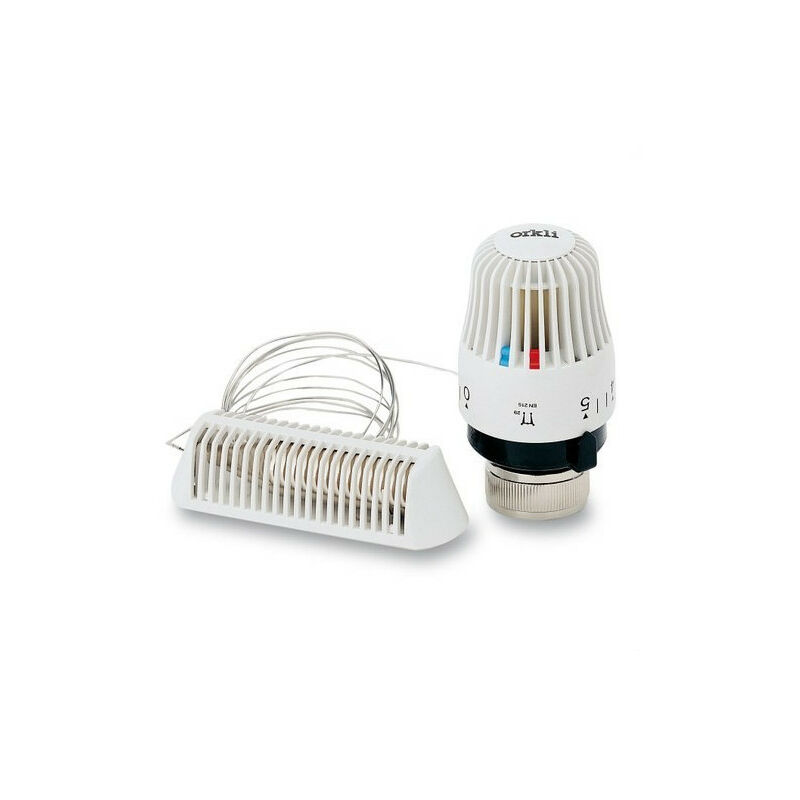Testa termostatica Harmony con sensore remoto M28. È adattabile a valvole termostatiche, dispone di blocco della manopola e dispositivo antigelo. Ha un campo di lavoro da 5°C a 27°C. Omologazione secondo le norme europee (EN-215).