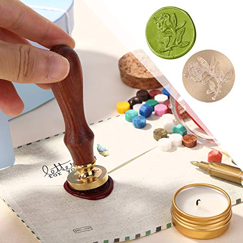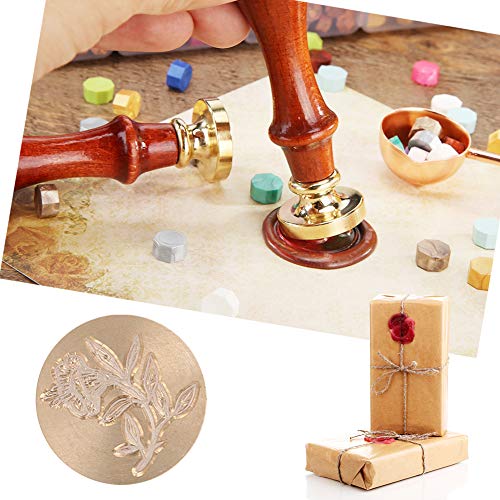 Testa Timbro Ceralacca Piante in Ottone Testa di Timbro Sigillo Ceralacca Vintage Sigillo Senza Manico Decorazioni per Biglietti Buste Fai da te Natale Matrimonio (Fiore 3#)